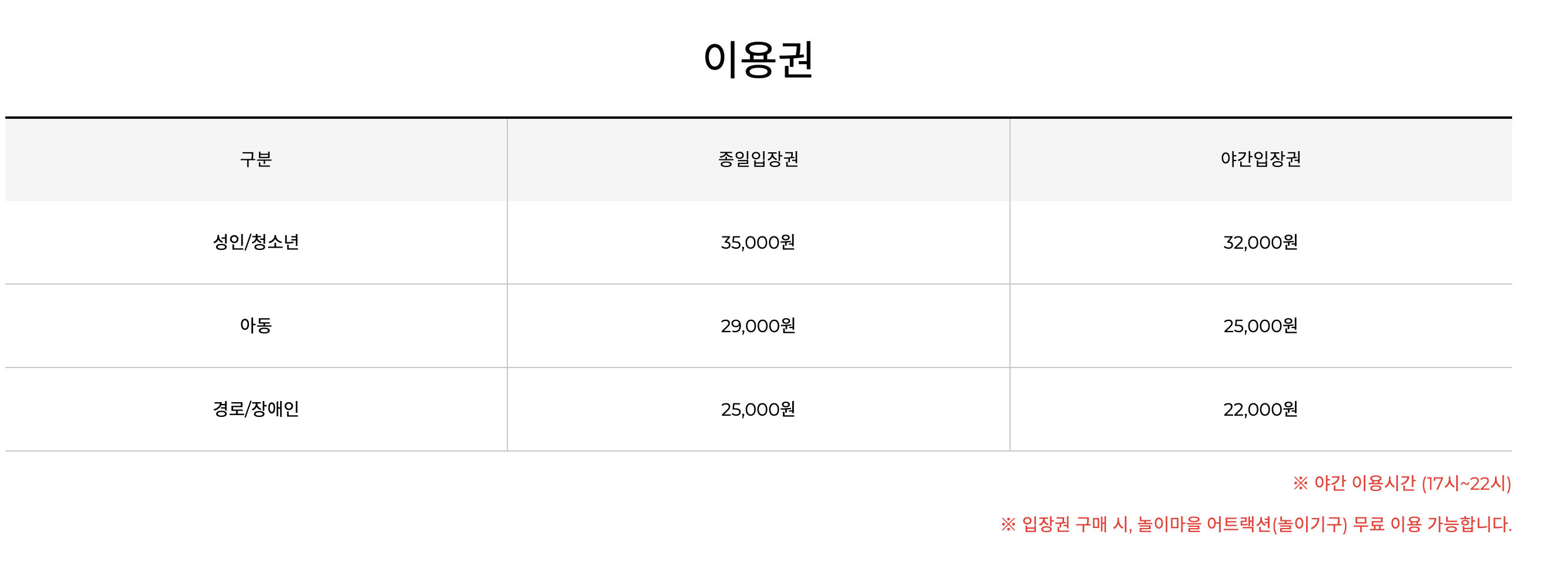 어트랙션 놀이동산의 이용금액은